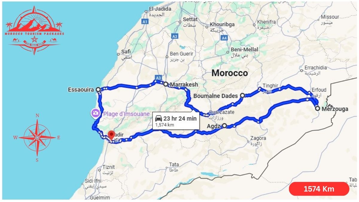 The best way to explore Morocco at your own pace, with comfort and flexibility, is to book a private 9 days Morocco tour from Agadir. The journey takes you from the Atlantic coastal town of Essaouira to the bustling souks of Marrakech, crossing the High Atlas Mountains, passing historic kasbahs, and venturing into the spectacular Sahara Desert near Merzouga. Traveling in a private vehicle with a professional driver-guide, you’ll enjoy a camel trek, stay in a luxurious desert camp, and spend two full days discovering the desert. Unlike group tours, a private journey allows you to choose your stops, savor authentic local cuisine, and experience Morocco’s culture and landscapes in a personal and unforgettable way.